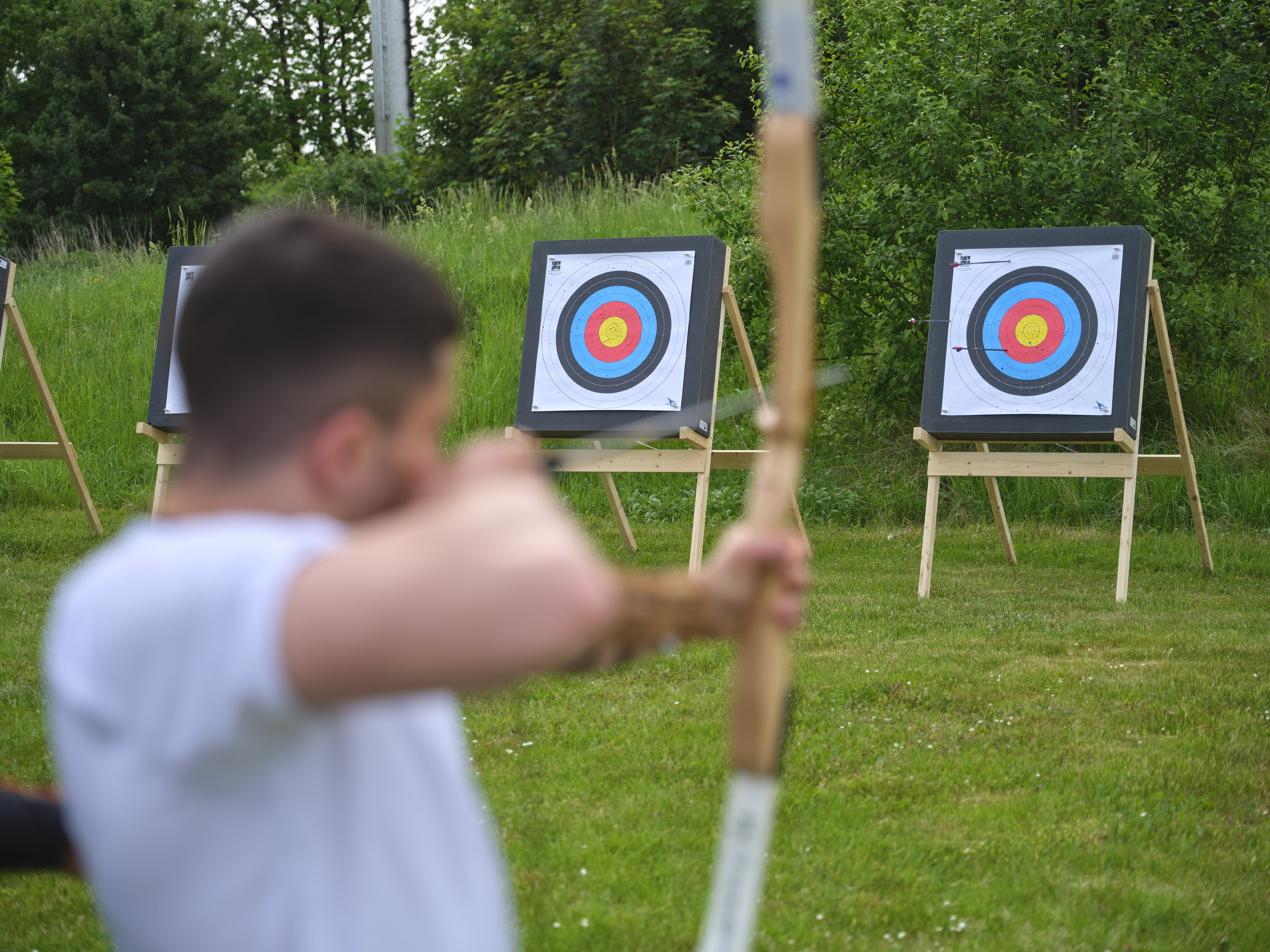 Spannende Naturerlebnisse in der Region Müllerthal – Kleine Luxemburger Schweiz: intuitives Bogenschiessen, Erlebnisrucksack, mobiler Niedrigseilparcours, Geocaching und Kooperationsaufgaben.